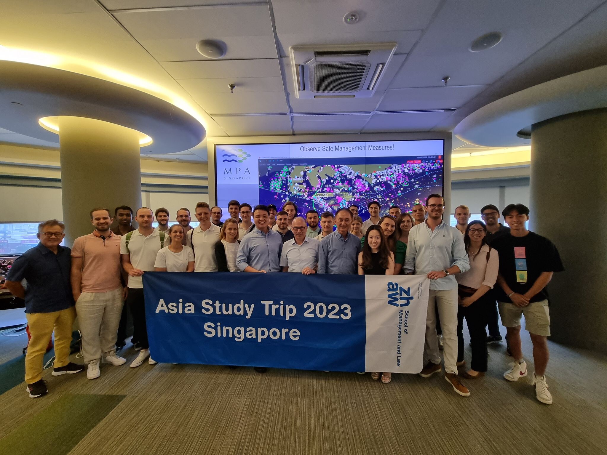 Picture: Visit of the ZHAW students and alumni at the control tower of Singapore Harbour, Singapore, July 2023